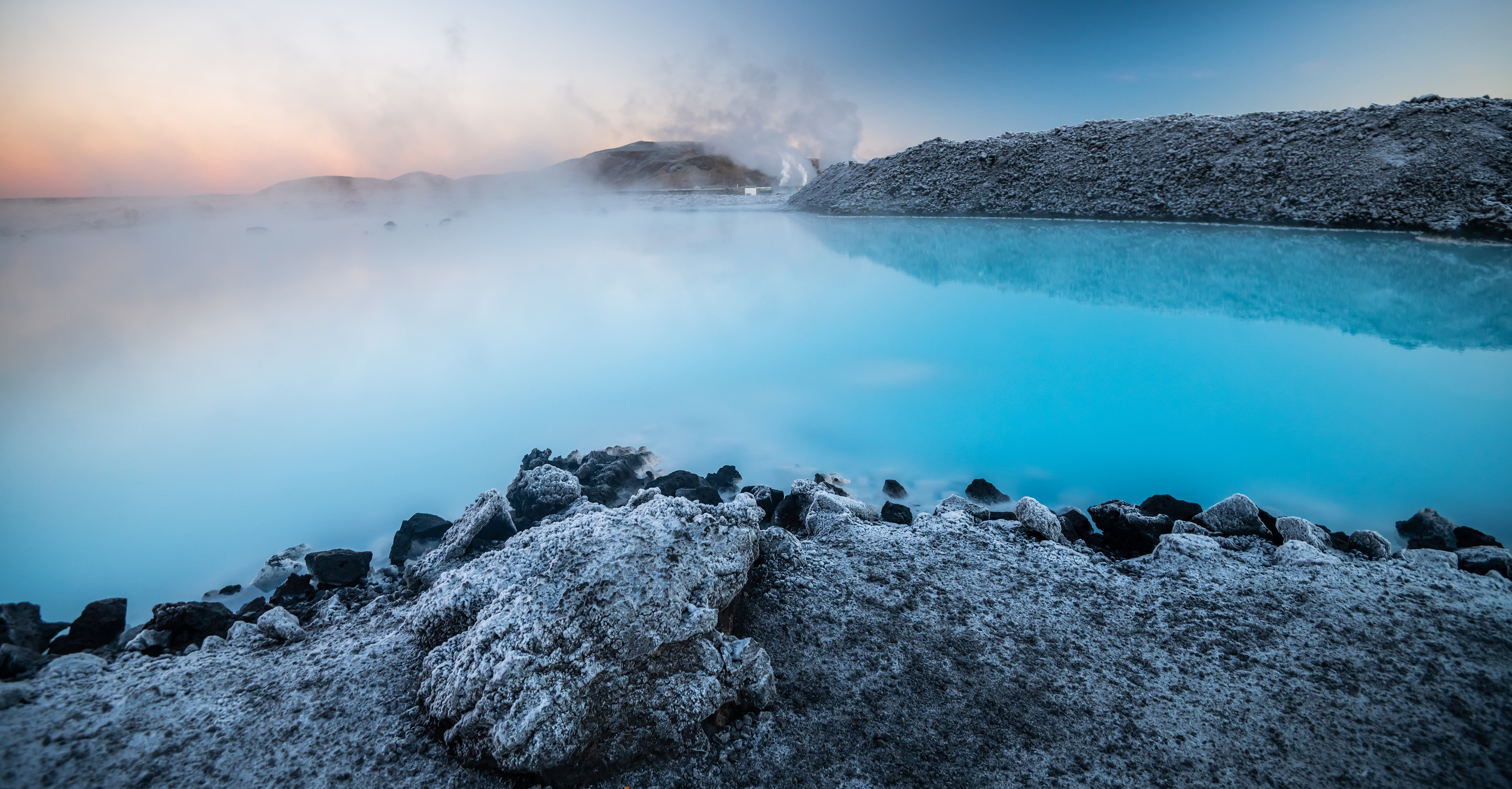 Blandt Islands mange varme kilder skiller Den Blå Lagune sig ud som en turkis oase midt i det sorte basaltlandskab. Spaen forsynes med havvand fra næsten 2.000 meters dybde, hvor vandet opvarmes til ekstreme temperaturer, før det langsomt bevæger sig mod overfladen. Undervejs optager det silica og mineraler og når frem til lagunen med en behagelig temperatur på omkring 38 grader.