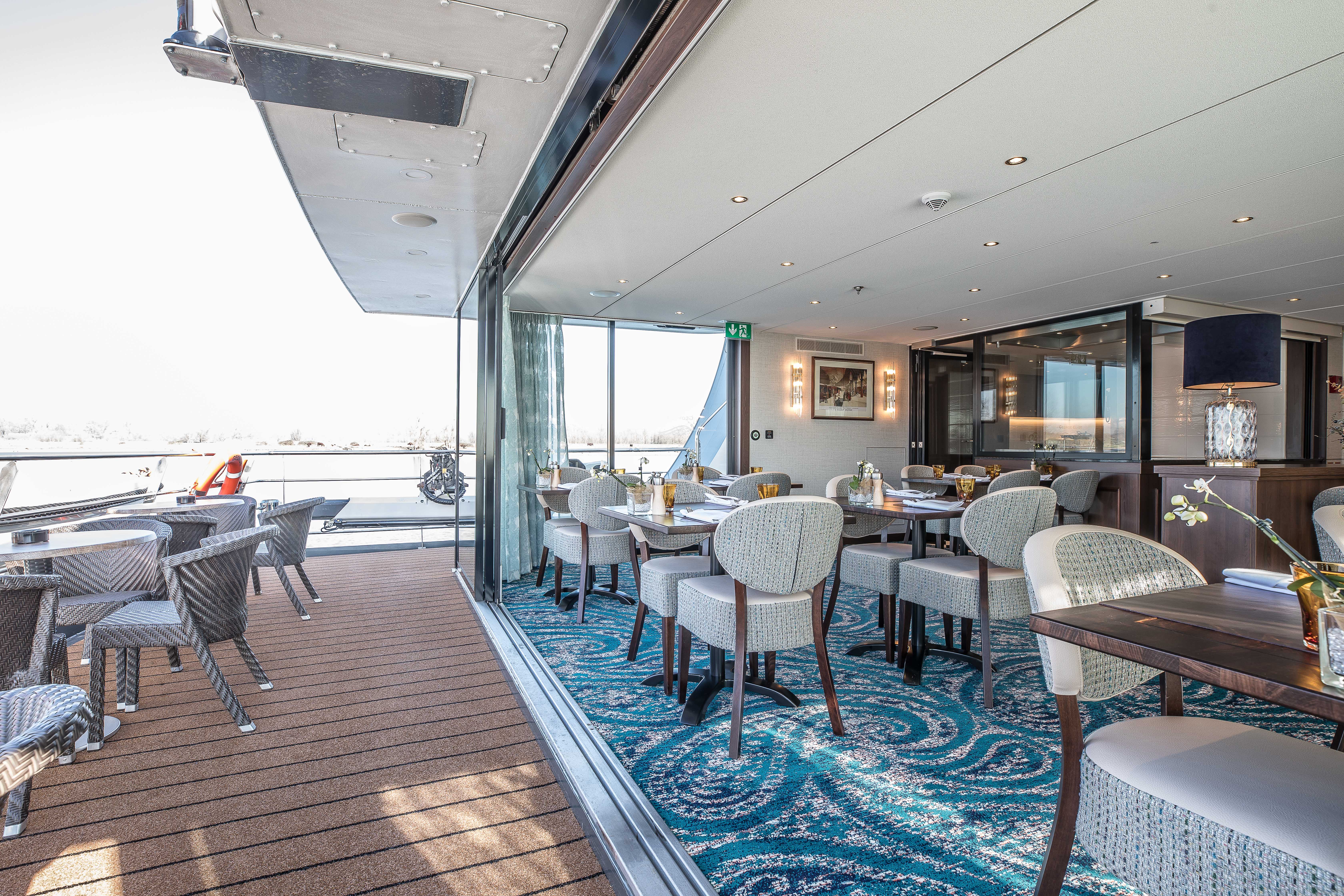 Vi bor på det eksklusive flodkrydstogtskib MS George Eliot, hvor der er kræset for detaljerne. Fra morgen til aften kan vi nyde velsmagende måltider i skibets restaurant og skønne drikkevarer i loungen – og bare læne os tilbage og nyde livet. Her er ingen stress, kun god tid og ro til at lade julestemningen synke ind.