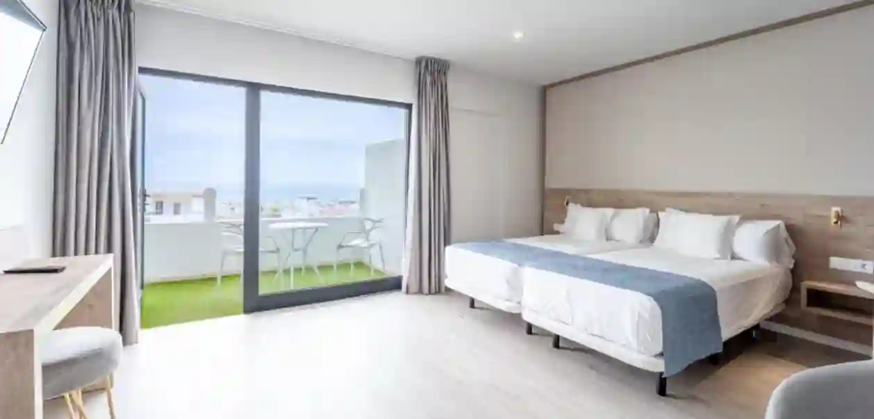 Værelser: De lyse, moderne og komfortable værelser er på 24 m2 og har to separate senge, der kan sættes sammen til en dobbeltseng. Værelset har et skrivebord med en stol, en kedel til kaffe og te, et lille køleskab, mini pengeskab, tv, telefon, aircondition, gratis trådløst internet og vækning. Badeværelset har bruser, hårtørrer og diverse toiletartikler. På altanen er der bord og stole, hvorfra man kan nyde den dejlige udsigt ud over byen og/eller Atlanterhavet.