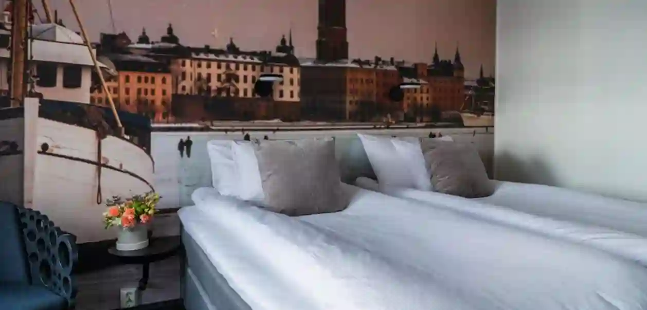 Værelser: Værelserne på Hotel C Stockholm er smagfuldt indrettede og på ca 16m2 med enten to enkeltsenge eller en dobbeltseng (140 cm bredde med dobbeltdyne). Alle værelser er med bad/toilet, gratis Wi-Fi, TV, vinduer, skrivebord og faciliteter til at lave kaffe/te.