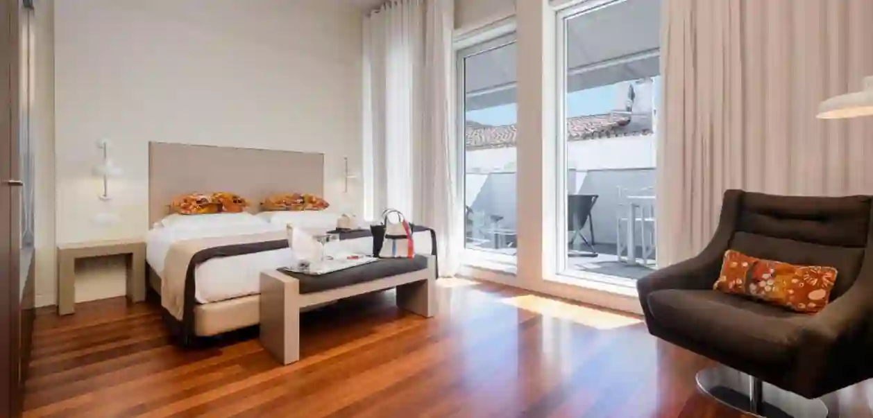 Værelser: Hotellets 64 elegant indrettede værelser ligger i den tidligere Palácio de Sepúlveda-fløj i stuen eller på 1. sal. Værelserne er 22m2 og moderne indrettet med trægulve og udsigt over byen. Her findes elkedel, gratis wifi, sikkerhedsboks, TV, minibar, aircondition samt badeværelse med bruser/badekar, toilet og hårtørrer.