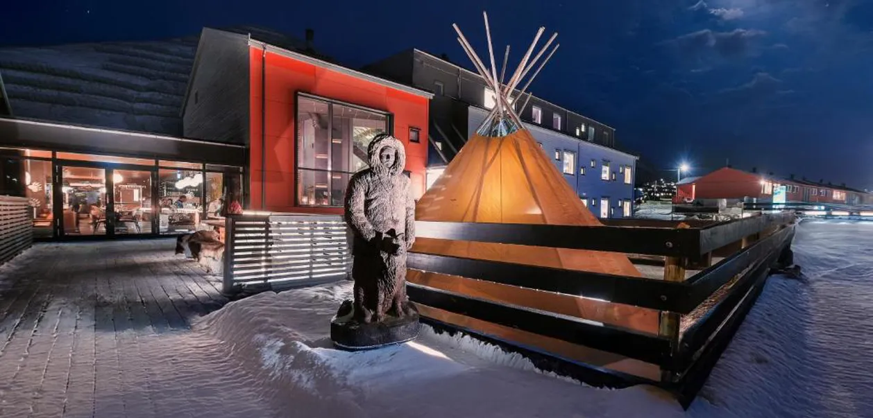 Det moderne hotel har en fremragende beliggenhed i hjertet af Longyearbyen. Der er kun 250 m til shoppingscentret Lompen, 750 m til Svalbard Museum og 1,2 km til Svalbard kirke. Værelserne er fordelt i flere bygninger, og her hersker en dejlig stemning præget af komfort og stor gæstfrihed midt i det arktiske landskab. Bemærk, at man i mørketiden følger Svalbards gamle tradition med kun at benytte hjemmesko indendørs.