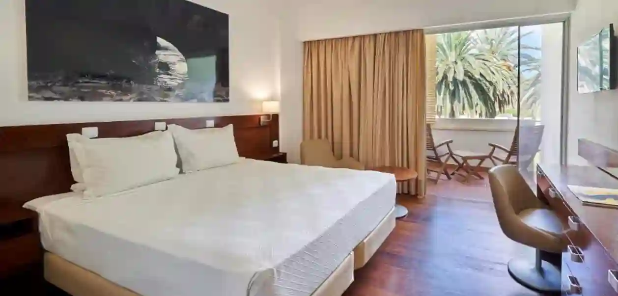 Glæd dig til at bo på dette charmerende strandhotel omkranset af palmer på øen Porto Santo. Det elegante hotel har en fantastisk beliggenhed direkte ud mod det krystalklare blå Atlanterhav, og ligger på selve sandkanten ud til den 9 km lange gyldne sandstrand. Det er en formidabel oplevelse at bo direkte ud mod den unikke sandstrand, hvor man vitterlig kan sidde med fødderne i sand, og nyde livet med en let frokost eller en drink på hotellets hyggelige strandbar til lyden af havets musik. Hele hotellet ligger i stueetagen. Der er 1,5 km til både hovedbyen Vila Baleira og ”Quinta das Palmeiras” – og fra receptionen er der blot 200 meter til selve sandkanten. Der er rig mulighed for vandreture i hele området.