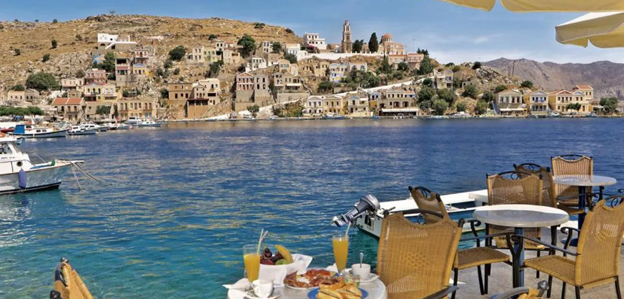 Dette skønne hotel ligger som en perle med uovertruffen beliggenhed i hovedbyen Yialós på øen Symi. Hotellet ligger direkte ud til havnefronten med fremragende udsigt til de små fiskerbåde og til livet i de hyggelige græske tavernaer.