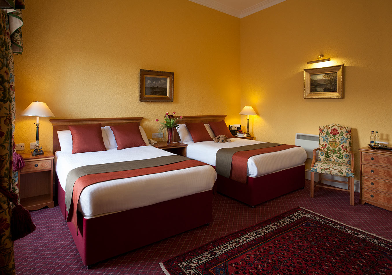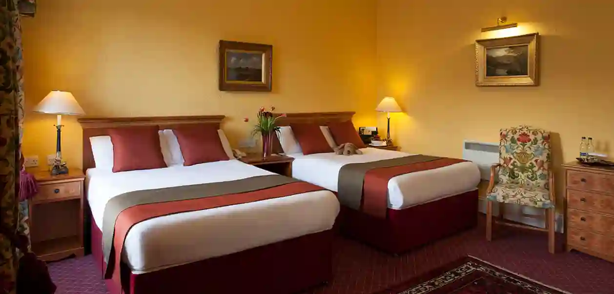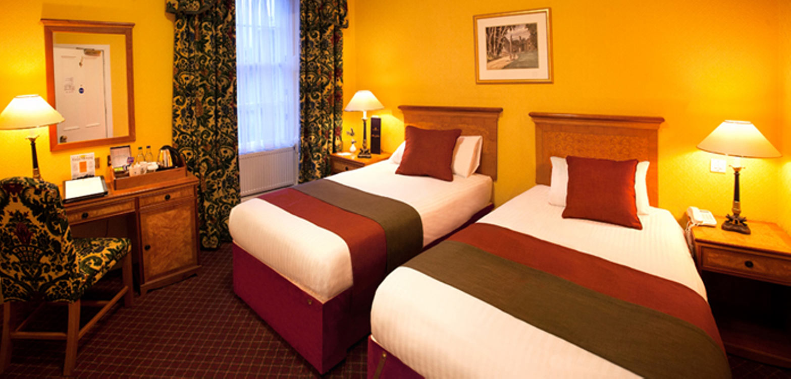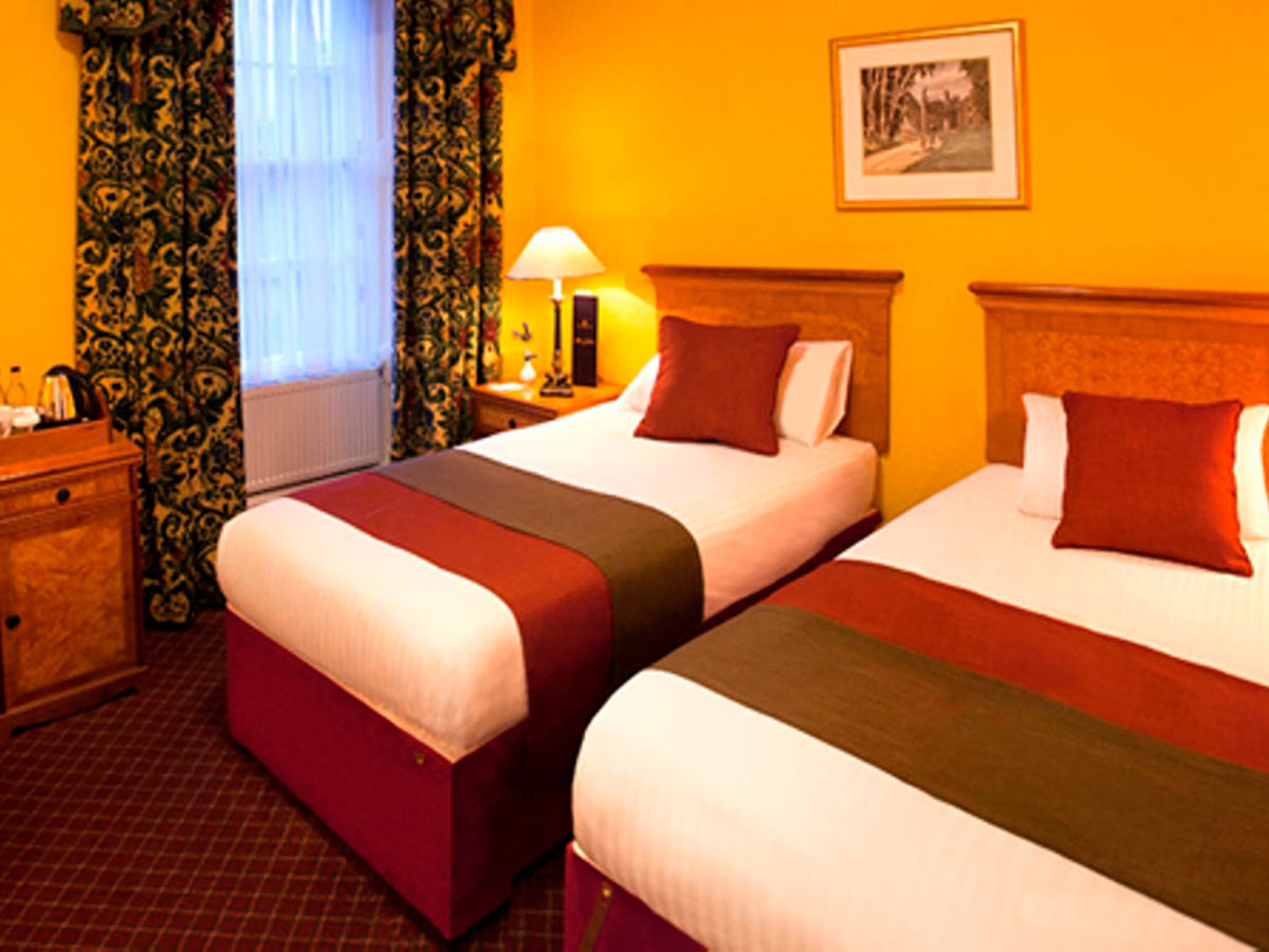 Værelser: Værelserne varierer i størrelse og standard - nogle har et nyere udtryk, mens andre stadig har det gamle traditionelle skotske udseende. Alle værelser er udstyret med TV, gratis Wi-Fi, elkedel med kaffe/te-faciliteter, hårtørrer samt badeværelse med bruser og toilet.