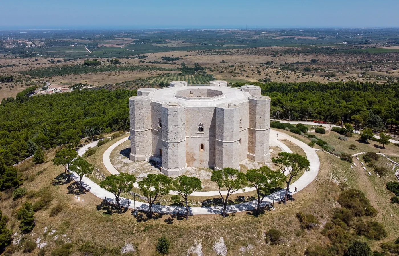Ved første øjekast fremstår borgen som en næsten perfekt geometrisk drøm. En ottekantet fæstning med otte tårne, der ligeledes er ottekantede. Jo længere tid man opholder sig der, desto tydeligere bliver det, at intet er tilfældigt. Slottet blev opført i 1200-tallet af kejser Frederik II, en af middelalderens mest fascinerende og fremsynede herskere. Hans interesse for matematik, astronomi og filosofi gennemsyrer hele konstruktionen. Castel del Monte er både enkel i sin form og komplekst i sin betydning – et arkitektonisk mysterium, der vækker undren. Med en diameter på 56 meter imponerer borgen ikke kun i størrelse, men også ved sin præcision. Her mødes klassiske, gotiske og islamiske stilelementer i en sjælden harmonisk helhed.