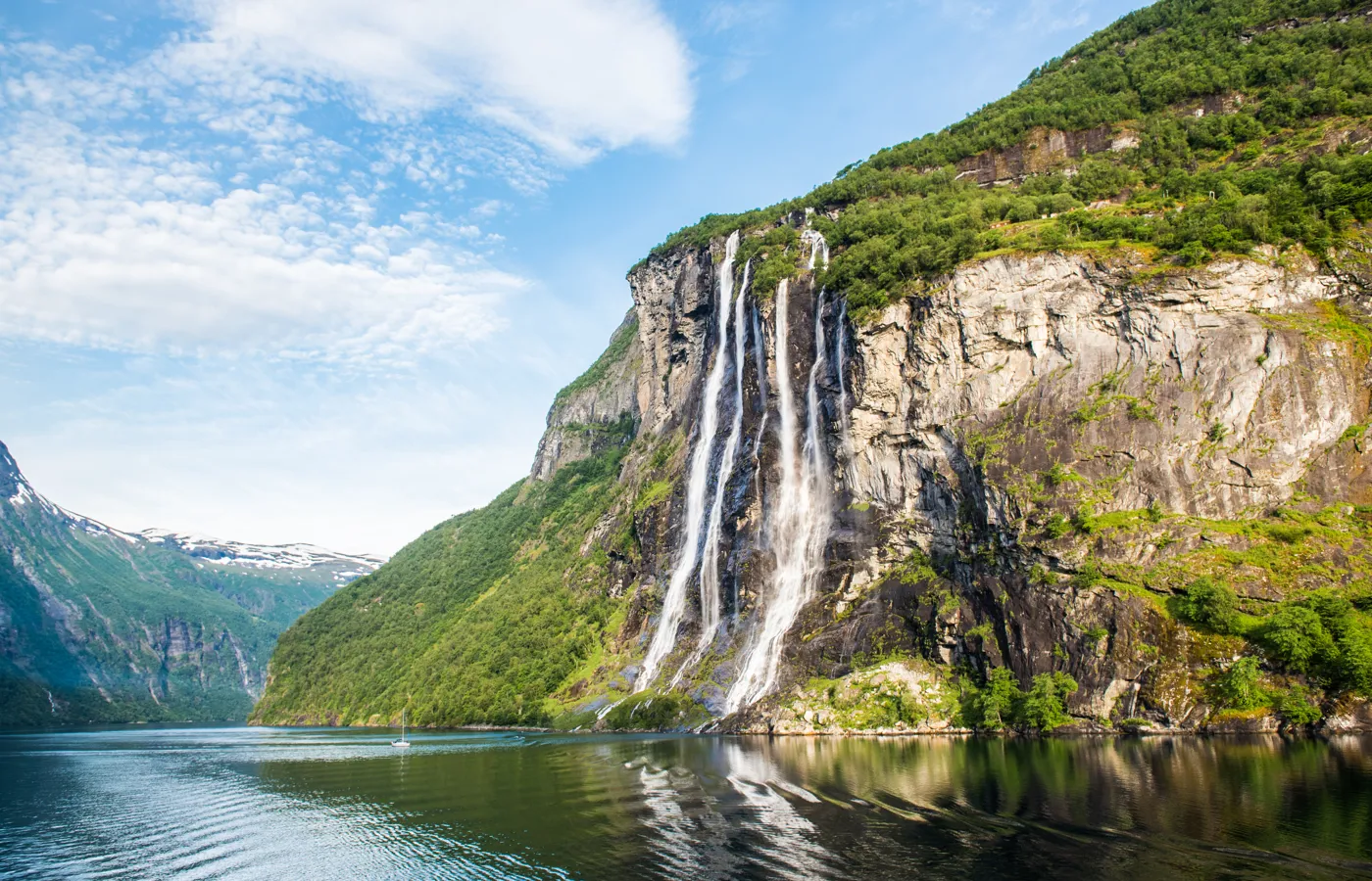 Et af de mest bemærkelsesværdige træk ved Geirangerfjorden er de stejle og imponerende fjeldsider, der omgiver den. Disse stejle fjeldvægge stiger op til over 1.000 meter over havets overflade og er dækket af frodig vegetation, der skaber et fascinerende kontrastfyldt landskab.