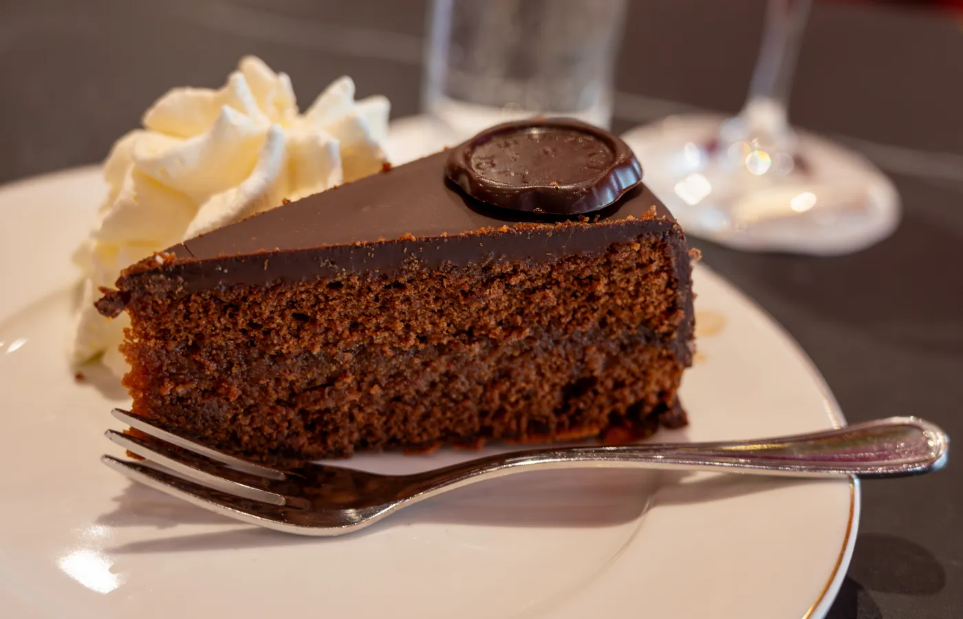 En ægte Sachertorte har en sofistikeret smag, og den serveres altid med en klat usødet flødeskum og en kop stærk kaffe - gerne i Wien, Salzburg eller Innsbrucks stemningsfulde kaffehuse.