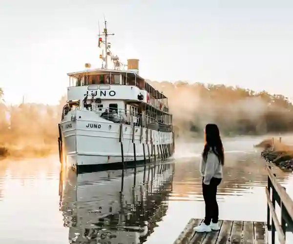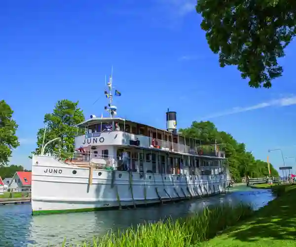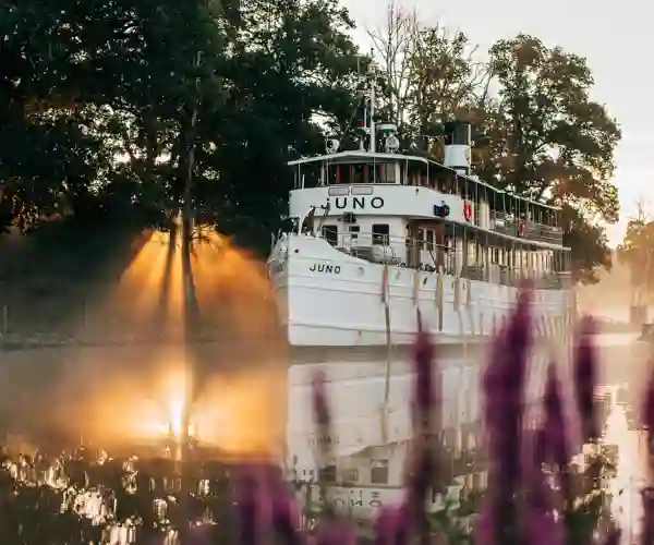 M/S Juno er ikke bare et skib – det er et stykke levende søfartshistorie. Ombord mærker du vingesuset fra 1800-tallet, mens du sejler gennem Sveriges smukkeste kanaler.