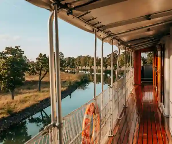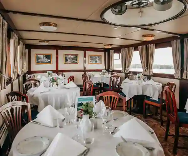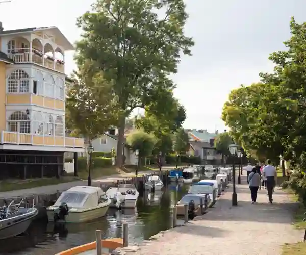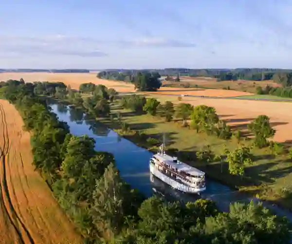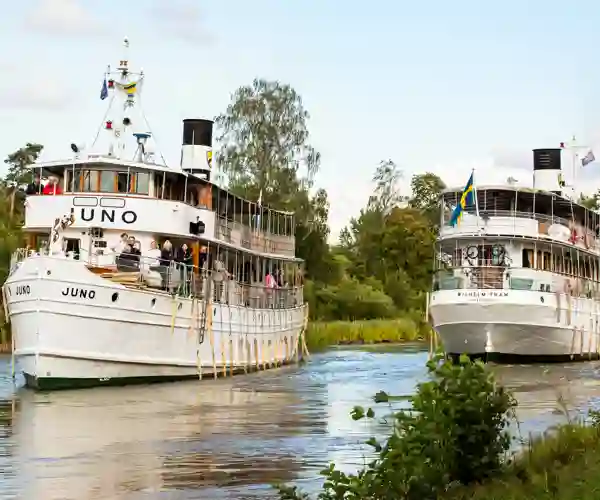 Undervejs opleves perler som Trosa, med sine blomstrende træhuse og hyggelige kanaler, og klosterruinen ved Vreta, som vidner om en svunden tid. Oplevelserne veksler mellem fredelige landskaber og små guidede vandringer i byer som Motala og Sjötorp – hver især med sin egen historie og charme. Vi passerer spektakulære sluser, herunder den imponerende Carl Johans slusstrappe, og sejler på den glasklare sø Viken, mens naturen spejler sig i vandet. Der bliver også mulighed for et køligt dyp i søen eller en afslappet gåtur langs kanalens bred.