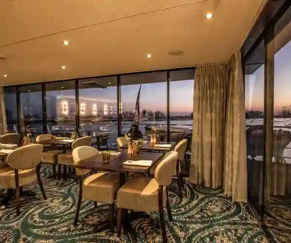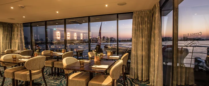 Vi bor på det eksklusive flodkrydstogtskib MS George Eliot, hvor der er kræset for detaljerne. Fra morgen til aften kan vi nyde velsmagende måltider i skibets restaurant og skønne drikkevarer i loungen – og bare læne os tilbage og nyde livet. Her er ingen stress, kun god tid og ro til at lade julestemningen synke ind.
