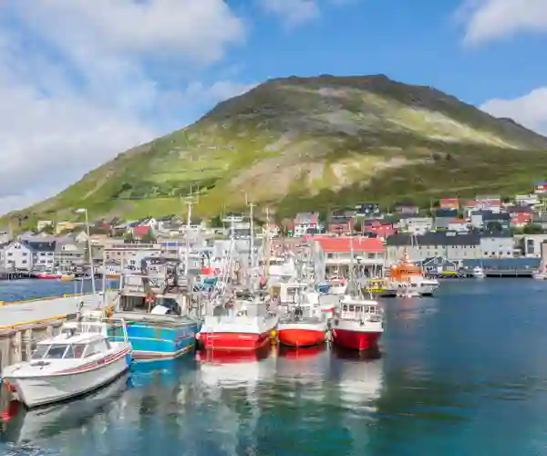 Efter det arktiske eventyr sætter vi kursen mod endnu et ikonisk sted: Nordkap. På det majestætiske klippeplateau, hvor det europæiske fastland ender, oplever vi midnatssolen i al sin glød. At stå her, 300 meter over Ishavet, i næsten overjordisk lys og stilhed, er en oplevelse, man aldrig glemmer. Og på denne rejse er det ikke blot et kort stop – vi bliver i Honningsvåg hele dagen og aftenen, så der er god tid til både den inkluderede udflugt og til at indfange stemningen i dette særlige hjørne af verden.
